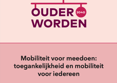 'Mobiliteit voor meedoen: Toegankelijkheid en mobiliteit voor iedereen' is onderdeel van het programma Ouder Worden 2040. Voor veel ouderen is zelfstandig boodschappen doen en deelnemen aan sociale activiteiten niet vanzelfsprekend. Dat komt bijvoorbeeld omdat ouderen in mindere mate gebruik kunnen maken van vervoersmiddelen, of omdat zorg, winkels en activiteiten voor hen niet op loopafstand zijn. In het whitepaper beschrijven we wat er nodig is om in 2040 in Nederland mobiliteit inclusief in te richten. Ook geven we een overzicht van bestaande initiatieven die ouderen helpen mobiel te blijven en aan activiteiten mee te doen.