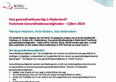 Korte factsheet van Nivel over de gezondheidsvaardigheden in Nederland. Gezondheidsvaardigheid zijn belangrijke determinanten van gezondheid en sociaaleconomische gezondheidsverschillen.